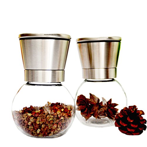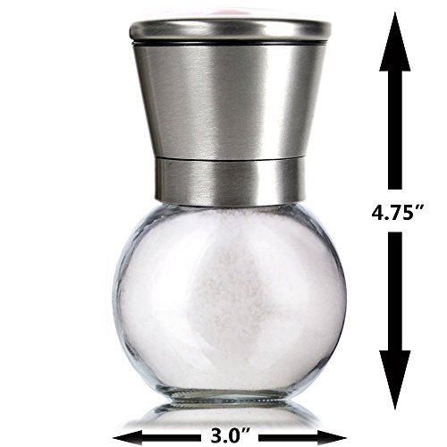 Unique design:capacity: 200ML, Tall:4.75 inch, Width:3 inch; salt and pepper mills feature a wide, 1,5’’ mouth opening that allows for less spills during refilling them, helping you to maintain a clean kitchen.