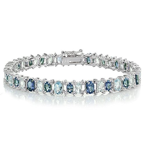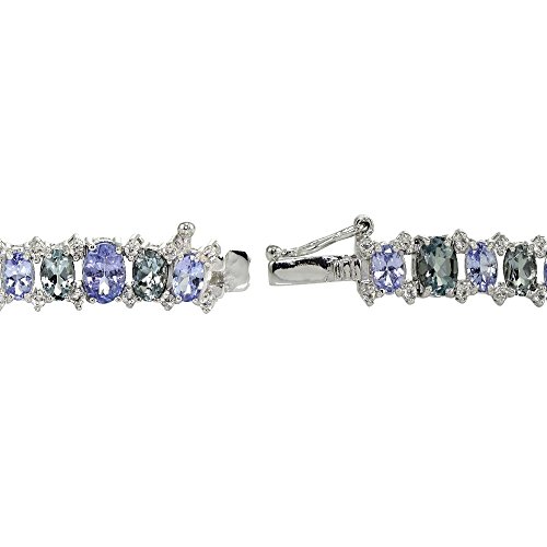 This beautiful bracelet features oval-cut tanzanite and blue topaz gemstones with smaller accent white topaz to give it more glam. The sterling silver bracelet secures with a safety catch and pressure clasp.