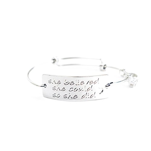 Plated in precious metal and inscribed with a message of female empowerment, this expandable "She Believed She Could So She Did" bangle bracelet makes an expressive gift for a mother, daughter, friend or yourself!