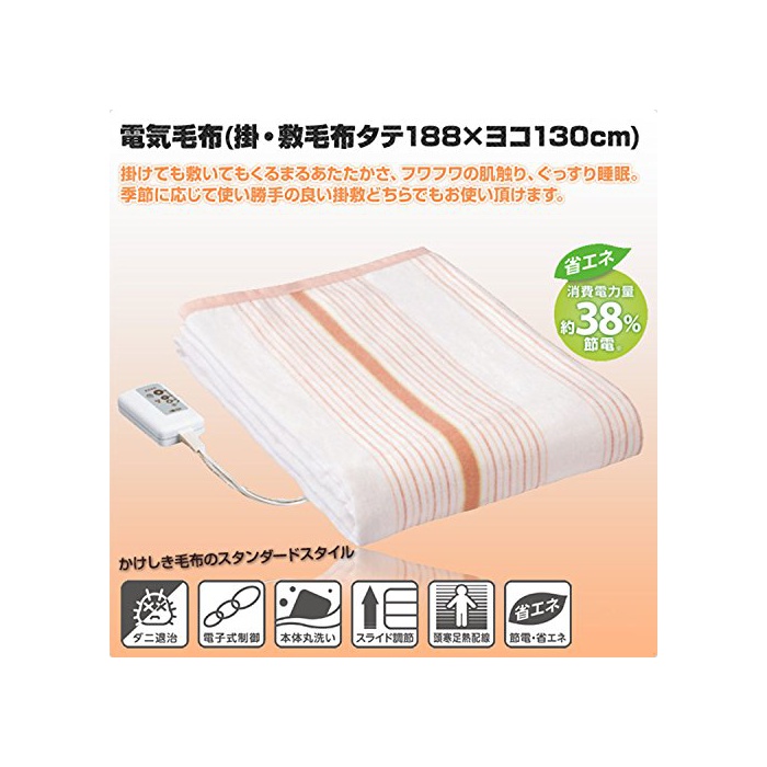 원본상품명:電(KODEN) 電毛布(掛敷毛布) Mサイズ(188×130cm) 省エネタイプ CWS-702B-5