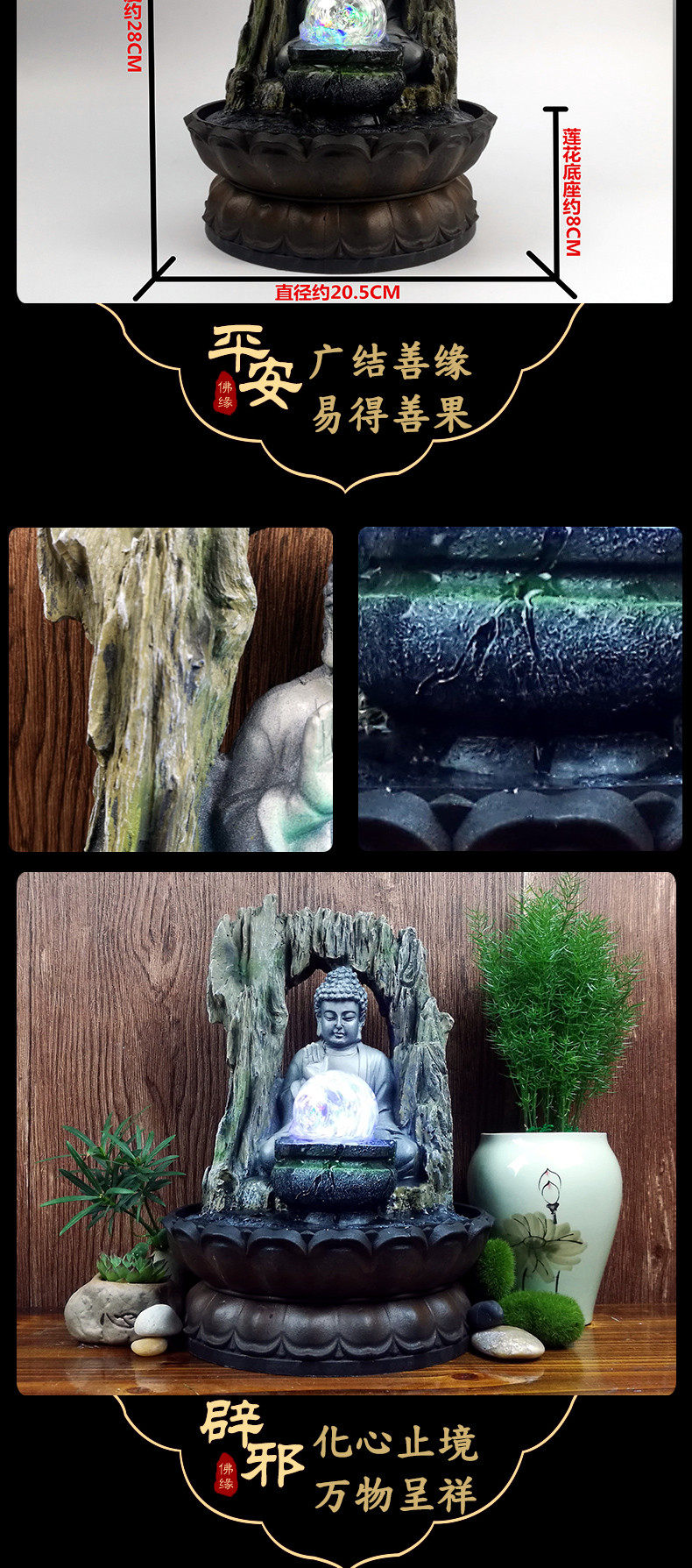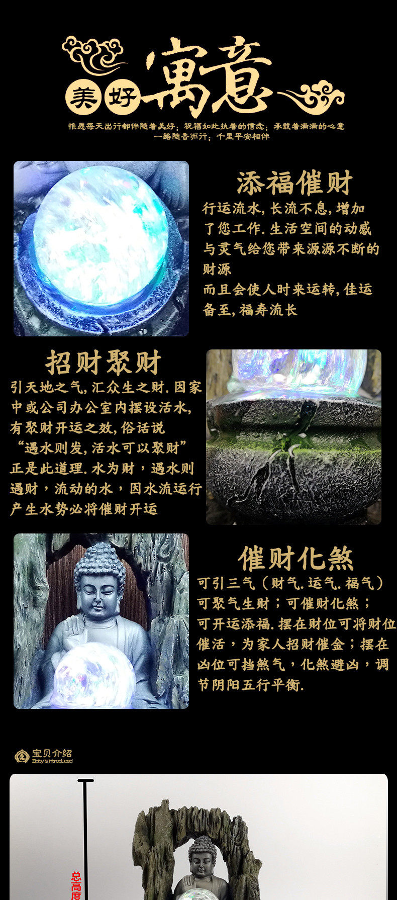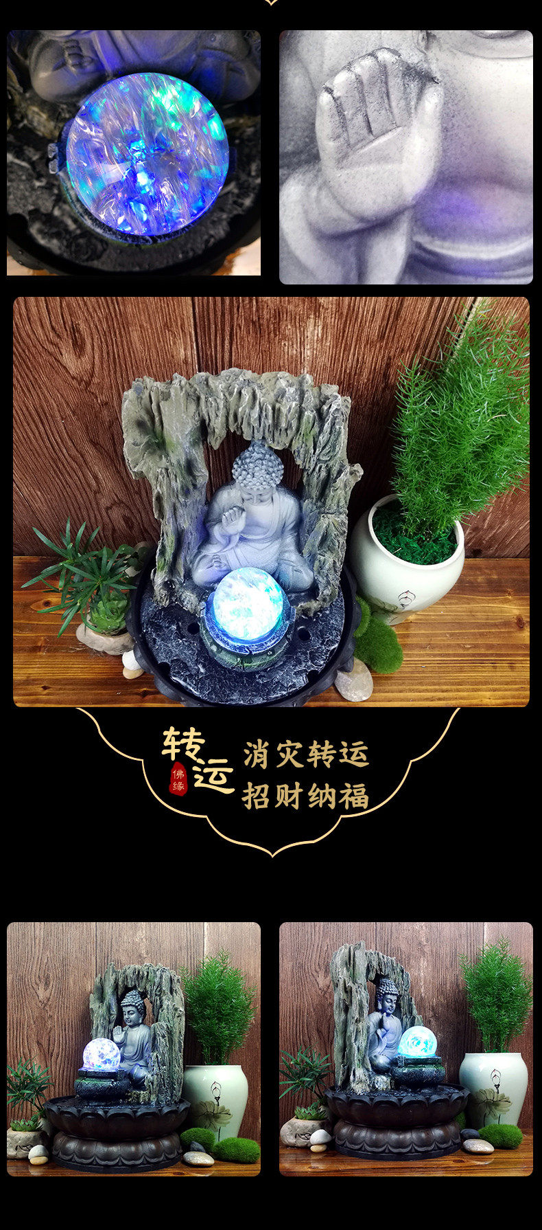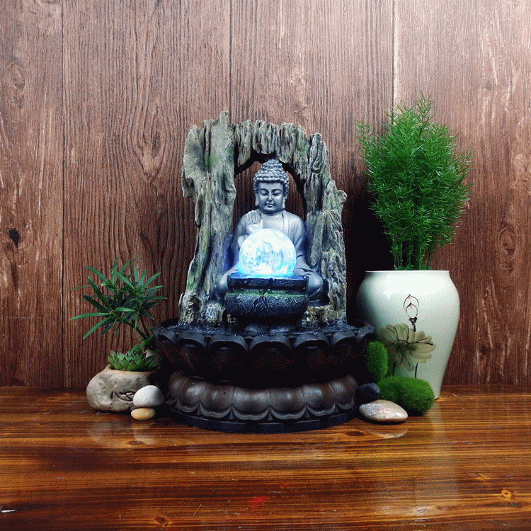 创意喷泉流水摆件东南亚家居装饰品佛像招财风水球工艺品礼品