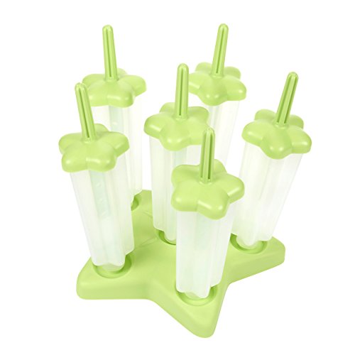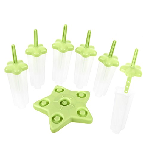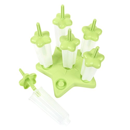 Ice Pop Mold 6 Pack Freeze Pop Maker - Reusable Star Shaped BPA-Free Plastic Ice Lolly Stick Molds for Homemade Iced Snacks, Green