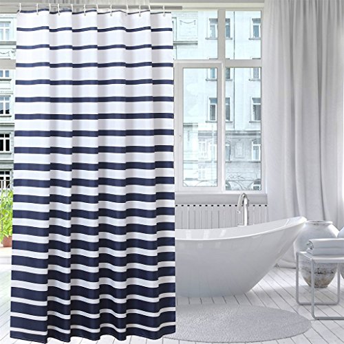 JES&MEDIS Waterproof Mildew Bathroom Curtain Navy Blue Stripes Shower Curtain,72-Inch by 72-Inch