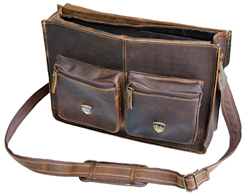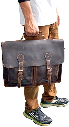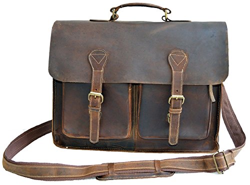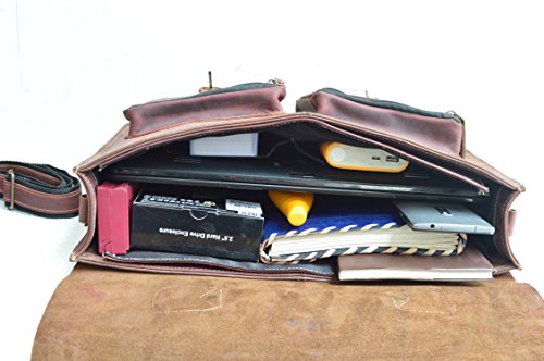 -. Feature : This leather shoulder messenger bag has dimensions : 12 X16 X 4 inches (height, width, depth) . / The briefcase bag is made of 100% genuine oil-pull up leather. Ideal for 15.6" computer macbook , large laptops & tablets / Ipads . No nasty chemicals used for tanning, won't cause any allergic disease if in contact with skin. / This leather satchel has brass polished buckles . 100% rustproof. Adjustable shoulder strap , for best fitting for people of all sizes. / The leather laptop case has two external front pockets for keeping misc. things A rear external full sized zippered pocket. Has a sturdy mix cotton inner lining for real long life. Handle on top for it can be used as a briefcase. Has Once main compartment and one zippered pouch to keep misc items. Inside has two pockets to separate small things from the main compartment. / The suitcase bag's Shoulder straps comes with padded shoulder pads , very convenient for carrying, with shoulder pad.