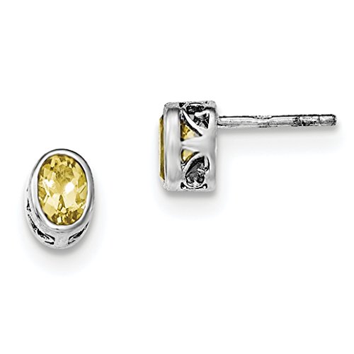 ICECARATS DESIGNER JEWELRY 925 STERLING SILVER YELLOW CITRINE OVAL POST STUD BALL BUTTON STUD EARRINGS