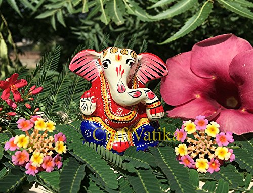 Metal God Ganesha Ganesh Statue- Hand Painted Lucky Artistic Gift, Hindu God Idol (Multicolor, 2.5 Inches)