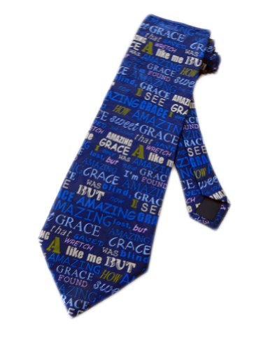 Product DescriptionTie depicts the lyrics of "Amazing Grace," the classic Christian hymn, on top of a blue background0