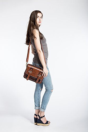 Material: Soft faux (sythnetic) leather, vintage metal hardware and fully polyester lining