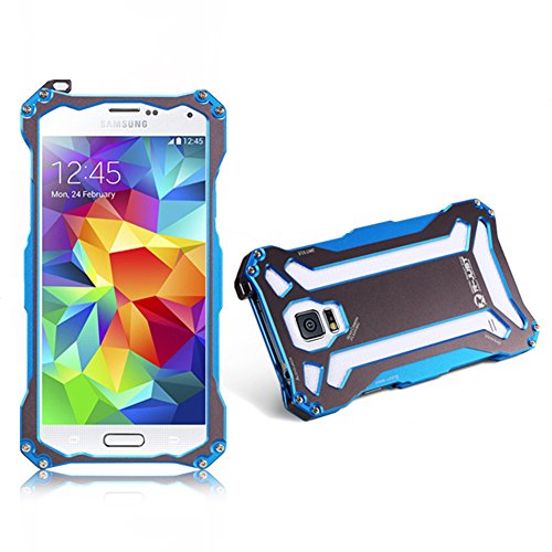 R-JUST Gundam Aluminum Oxidation Metal Cases Covers For Samsung Galaxy S5 I9600 Blue & Silver