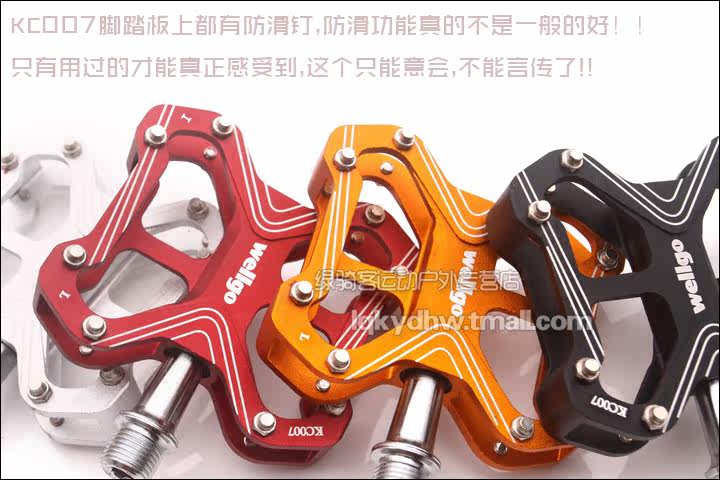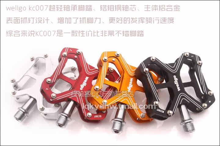 WellGo kc007 ultra light weight bearing foot chrome molybdenum steel shaft core the main body of aluminum alloysurface scratching nail design increase the catch foot better play the riding speed generally speaking KC007 is avery good foot price!