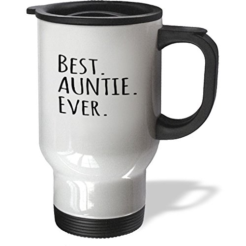 3dRose tm_203239_1 Best Auntie Ever Family Gifts for Relatives Black Text Stainless Steel Travel Mug, 14 oz, White