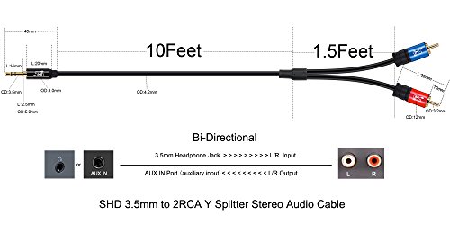 10Feet 3.5mm Aux to 2RCA Stereo Audio Cable Compatible with iPhone/iPod,Smartphones,MP3 and Any Digital Devices with 3.5mm Jack to Stereo Receiver,Amplifier,Speaker with 2RCA Devices