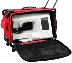 -. Feature : Practical wheeling case for designers and organization / Designed to fit sewing machine or serger / Ample zipper and mesh pockets / Telescopic puller bar is removable / Light, easy and functional
