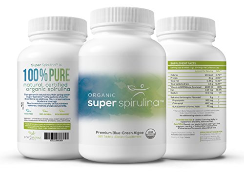 Super Spirulina: Pure USDA Certified Organic Spirulina Tablets - Blue Green Algae Superfood Supplement - No Additives or Chemicals - Raw, Non...
