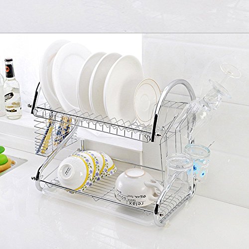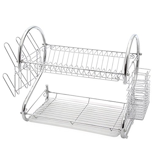 2 Layer Dish Rack Holds Up To 17 Plates Or Bowls. the water tray is easy to remove and empty, solid to hold any kitchen utensils,including a pan to catch waterdrops