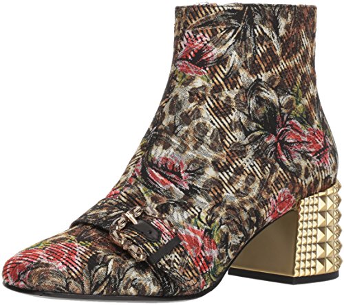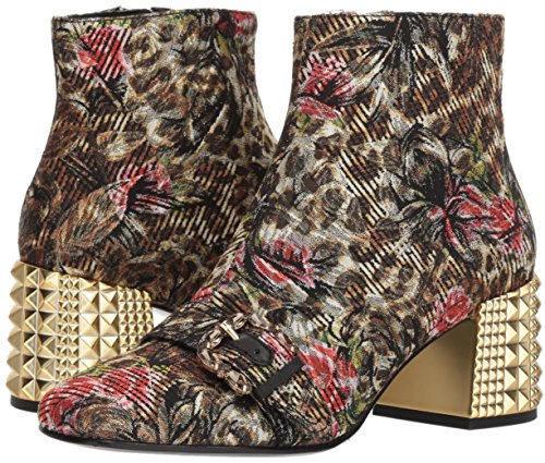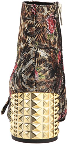 Product DescriptionAsh multicolor brocade boots with embossed metal chuncky heel and decorative buckle belt0
