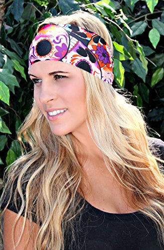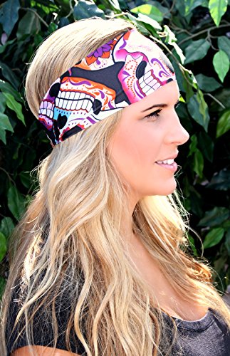 -. Title : RAVEbandz Fashion Stretch Headbands (SUGAR SKULLS DOD) - Non-Slip Sports & Fitness Hair Bands for Women and Girls