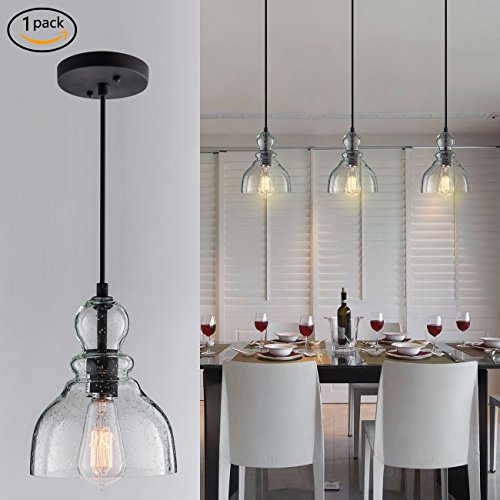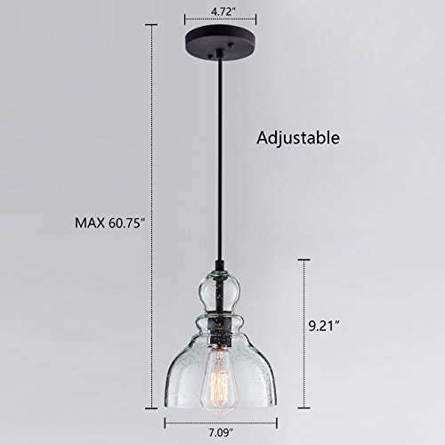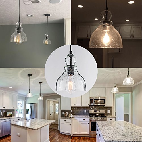 Donglaimei Industrial Mini Pendant Lighting with Handblown Clear Seeded Glass Shade, Adjustable Edison Farmhouse Kitchen Lamp for Kitchen Island, Restaurants, Hotels and Shops(1 Pack)