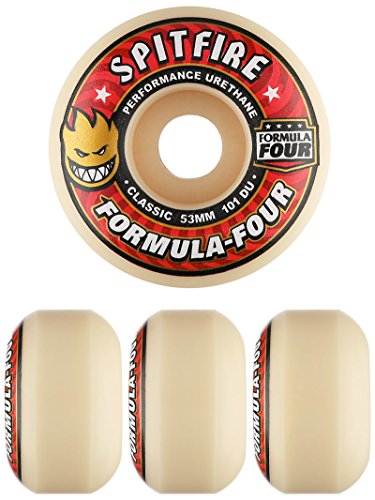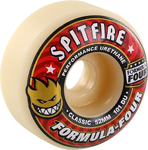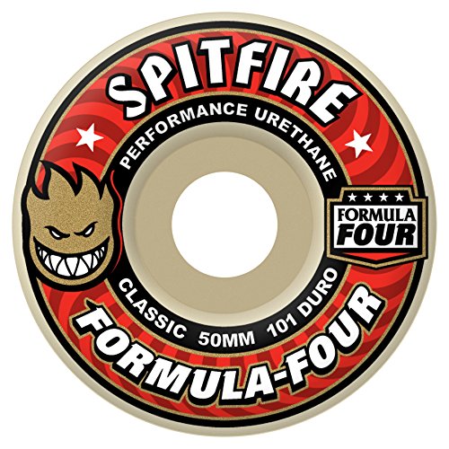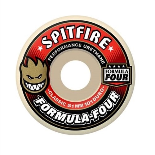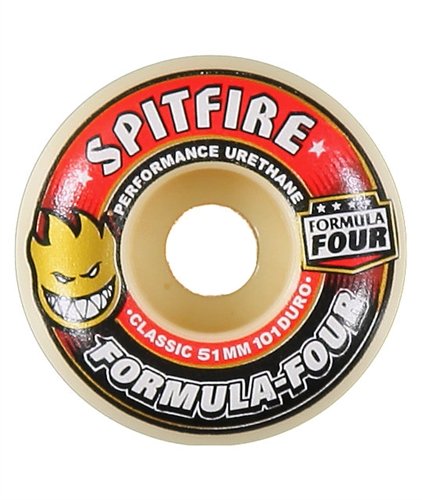 Studio : Spitfire Publisher : Spitfire Binding : Misc. Product Description Formula Four performance urethane lasts longer, withstands more abuse, and performs better than all other wheels. Spitfire Formula Four urethane was developed to combine all the desired properties of a performance wheel without sacrificing any one attribute at the expense of another. Formula Four's true lasting performance urethane comes not from a single benefit, but from a combination of qualities and features that together produce a truly great wheel. 0