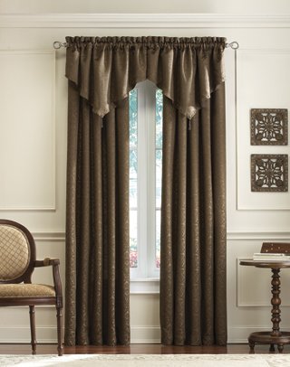 Add a bit of elegant flair with this ascot-styled valance, a perfect accent with the Mercato Curtain Panel, or stand-alone luxury!Tailored valance features a 3-inch rod pocket for use with a standard or decorative drapery rod.Single, wide-width valance measures 50 inches wide.Valance is sold individually.