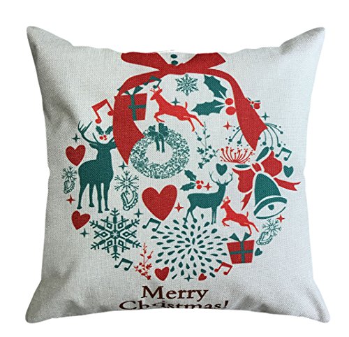 NATURALSHOW Throw Pillow Covers 18 X 18 Inches, Christmas Print, Holiday Reindeer Print Santa Claus