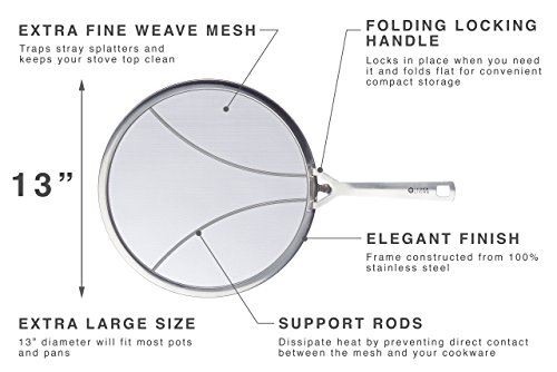 ▶ SPLATTER-FREE COOKING: The 13 inch splatter screen keeps you safe from nasty grease, oil, or sauce splatters while keeping your stove and counters clean when cooking your favorite meals.
