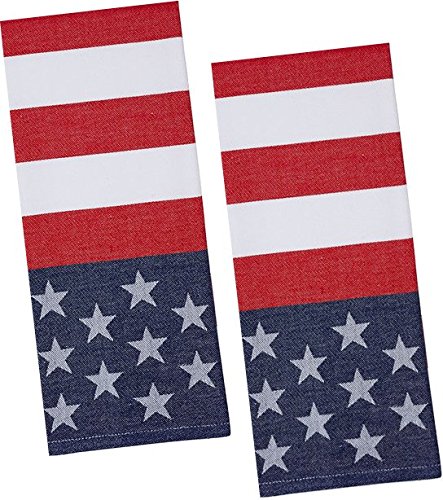 Flag Stars and Stripes Patriotic Cotton Jacquard Kitchen Towels, Set of 2