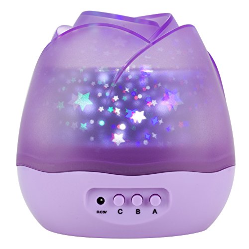 -. Title : SlowTon Stars Sky Night Light Lamp, Romantic Rose Shape with Color Changing Moon Stars Cosmos Rotating LED Nightlight Projector for Kids Gift Baby Girl Bedroom (Purple)