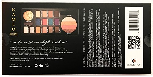 KAMEO Makeup Palette is the hottest 2018 makeup palette masterpiece designed and created by Beauty Master and Artist, Sheila Ko. This multi-functional compact palette includes 16 of the most popular and versatile eye shadow colors, including 5 matte shadows, 4 of the hottest 2018 jewel tone shimmer colors and 7 additional sophisticated shimmer shades. Inclusive is a bronzer and a 4 color quad cheek blusher. The moment you apply the colors to your skin, you will be able to feel the quality of the formulation, richness of the pigments, and surely to enjoy long lasting of colors of KAMEO.