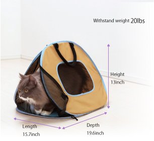 Very sturdy and light weight cat carrier. Cat can stay very comfortable inside while moving. Folds completely for easy storage. Dimensions:15.7 x 13 x 19.6 inchesFeature