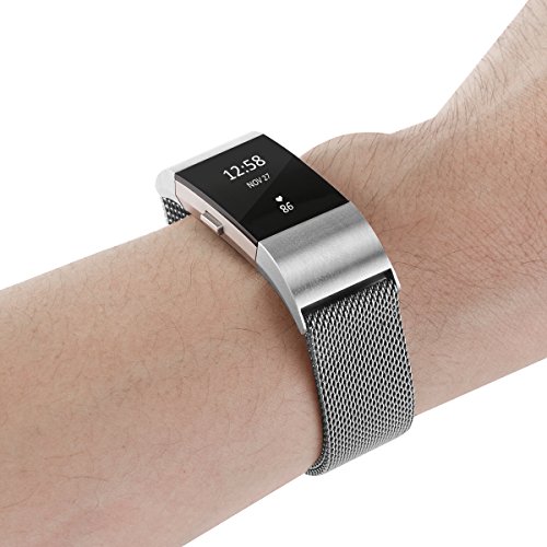 Fitbit Charge 2 Bands, UKCOCO Replacement Bands for Fitbit Charge 2, Stainless Steel Milanese Metal Large