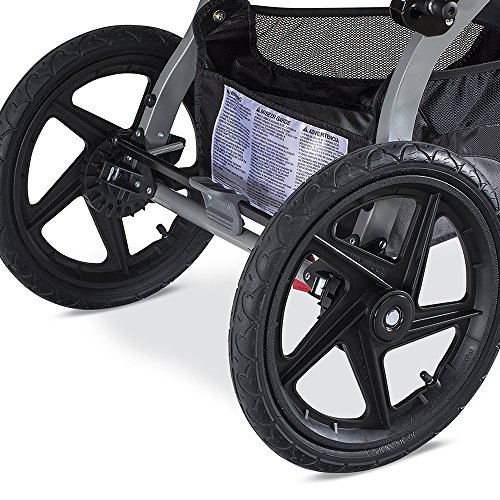 • Swiveling-Locking front wheel swivels to maneuver tight turns with ease or locks forward for increased stability when jogging or on rough terrain