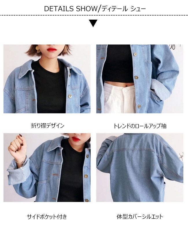 | 商品名 | デニムジャケット 秋冬ジャケット BF風ジャケット レディース 無地 長袖 Gジャン ロールアップ袖 ゆったり カジュアル 体型カバー 2017秋新作 |
