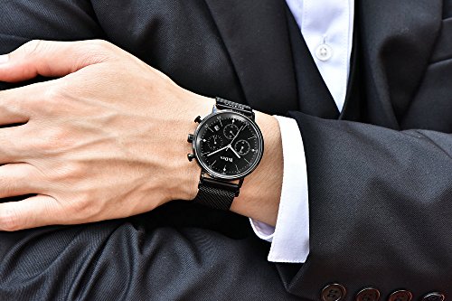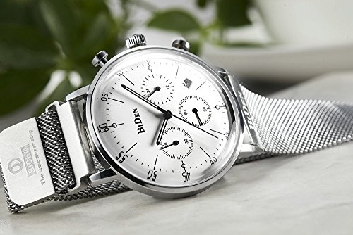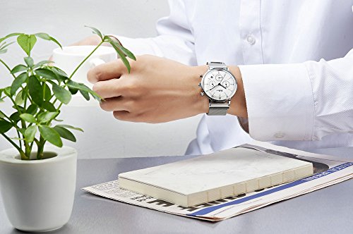 -. Feature : 機能説明:3時位置の小盤は24時間表示、6時位置の小盤は時刻の秒数、9時位置の小盤と中央の長い秒針はクロノグラフの分と秒表示;上のボタンはスタート/ストップ、下のボタンはリセット / 履き心地の良い、オシャレなミラネーゼループバンド採用、マグネットのデザインなので、長さも自由に簡単に調整できます / シンブルで上品なデザイン、見やすい大きな文字盤、日付表示、精度の高い日本製クオーツを採用、12か月保証 / バンド幅: 20 mm 長さ: 28 cm / ケース厚: 11.5 mm 直径: 40 mm / 3気圧防水(洗顔、小雨に濡れる程度):安心の日常生活防水仕様