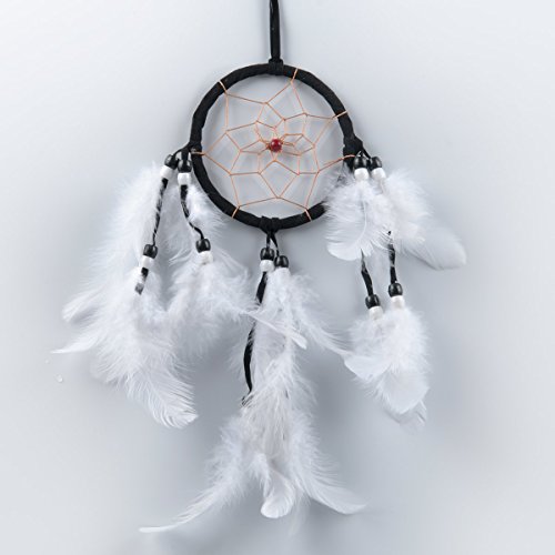 Luropa Dream Catchers White and black Handmade Beaded Feather Circular Net For Car Kids Bed Room Wall Hanging Decoration Decor Ornament Craft, Dia 4inch/10cm,Length 26cm/10.5inch