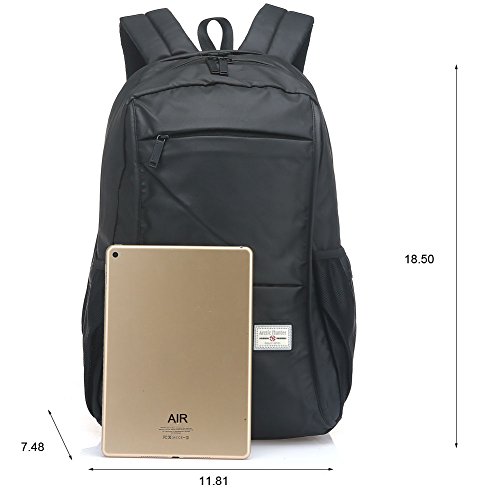 -. Feature : Material: Polyester / Size: 11.81 L*18.50 H*7.48 W inch / Zipper closure. Adjustable and padded shoulder straps. Back mesh padding / Structure: One front zipped pocket, Two sides pockets, Two main zipped pocket, One laptop compartment pocket, Five small pockets, and one small zipped pocket. / Big Capacity: books, wallet, mobile phone, keys, Ipad Air, laptop etc. Multi-function Bag, suitable for any occasion like traveling, Hiking, school, etc