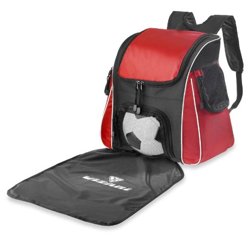 - Feature : Constructed of durable polyester / Large main compartment holds shirts, shoes and more / Breathable side pockets for important valuables / Mesh front ball pocket fits size 5 ball / Unique fold-out mat is great for wet or dirty surfaces