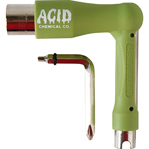 Studio : Acid Chemical Wheels Publisher : Acid Chemical Wheels Binding : Misc. Product Description This all-in-one, multi-functional Acid Chemical Wheels Space Multi-Purpose Skate Tool allows you to make personal adjustments and fine tune your skateboard or longboard, tighten your trucks, and change your wheels. Made from high-quality materials, this Acid Chemical Wheels skate tool is light enough to carry with you, yet durable enough to get the job done.Includes: One (1) Acid Chemical Wheels Space Multi-Purpose Skate Tool from Acid Chemical Wheels with 3/8 inch axle nut socket, ½ inch king pin nut socket, 9/16 inch truck mounting nut socket, and Phillips and Allen head screwdrivers. 0