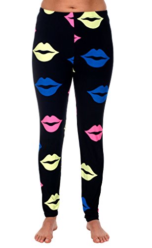 -. Feature : Women's Leggings / Ankle Length / Multi-Color Lips Pattern / 1" Elastic Waistband / 92% Polyester, 8% Spandex