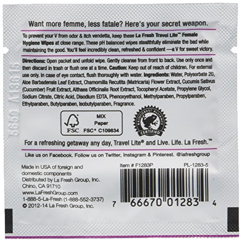 La Fresh Travel Feminine Hygiene Wipes - Portable and Discreet - 48 Individually Sealed Packets