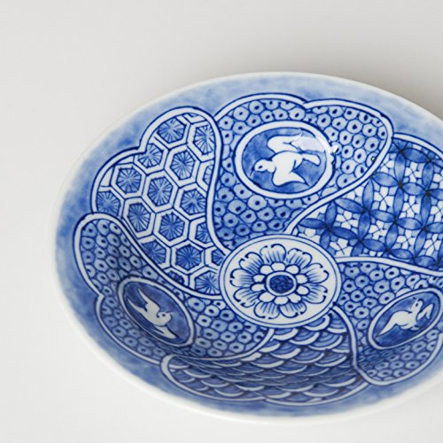 송화당 아리타산 도자기 소메쯔케(염부/청화백자) 물떼새 상서(길조)4 촌작은 접시 12cm 행악가마 krk6075