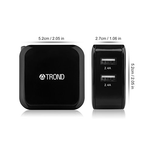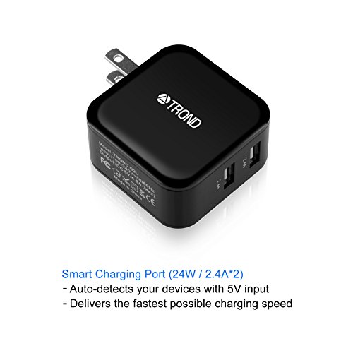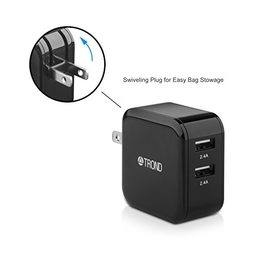 TROND G2U 4.8A 24W Dual USB Travel Wall Charger with Smart Charging and Foldable Plug, for Apple iPhone iPad, HTC Nexus Moto Blackberry, Bluetooth Speaker Headset & Power Bank (Black)