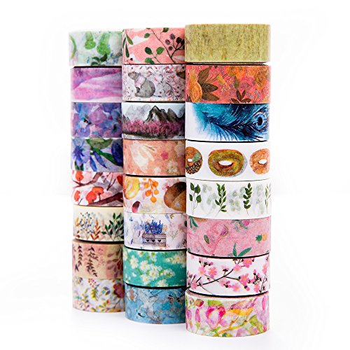 Washi Tape Set of 24,Decorative Washi Masking Tapes for Parties DIY Crafts and Gift Wrapping