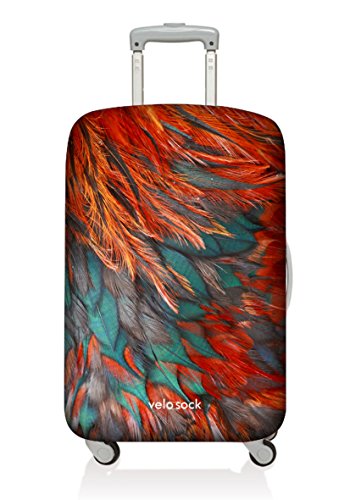 SAY 'NO' TO EXPENSIVE ONE-TIME DEALS WITH UGLY PLASTIC WRAPPING Finally you don't have to use those disposable plastic wrapping services to keep your luggage clean and scratch-free through airport handling. Or stand at the luggage carousel wondering which bag is yours. The VELOSOCK luggage cover will serve you from flight to flight and look so much more amazing. TURN YOUR LUGGAGE INTO A ROCKSTAR Is your luggage black? Did the bag get dirty after the first flight? Is it hard to find on the luggage carousel because almost every other bag is black as well? Not cool, right? Get your luggage a VELOSOCK cover, give it a new life and add style to your travels. And what's most important - no more guessing which bag is yours! THIEVES WILL HATE IT For thieves time is everything. They will not risk getting caught because of a pesky cover. Taking the cover off and then putting it back on, or even just taking it off makes them lose precious seconds. EVEN YOUR GRANDMA CAN FIT A VELOSOCK COVER ON- JUST SLIP IT AND CLIP IT! The stretchy material and unique design make it super easy for anyone: 1. Set in on the top 2. Stretch it to the bottom 3. Clip it That's it! Your luggage is not just protected but also so good-looking that you can't take your eyes off it! WHEN IT GETS DIRTY - WASH IT IN WASHING MACHINE Since all dirt stays on the cover, not on your luggage, you can easily and safely wash it in a washing machine once the cover gets dirty. Wash at 30 - 40° C (80 - 100° F) or less. We promise that colours will not wear off even after many times in the wash. Fabric: 90% Polyester, 10 % Spandex