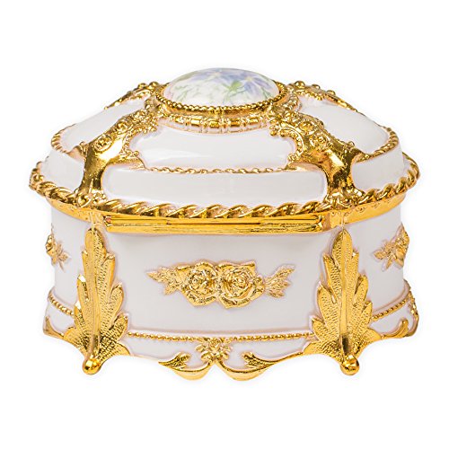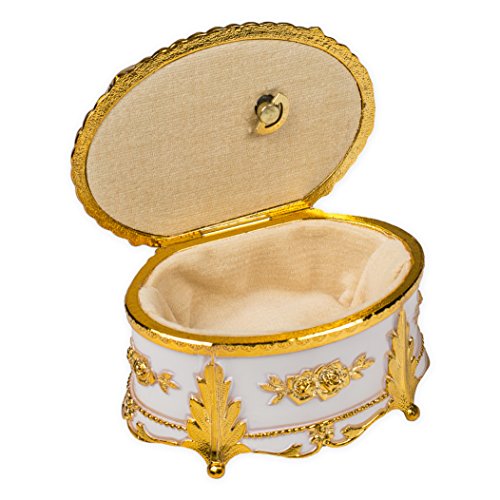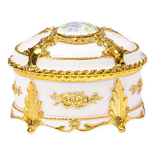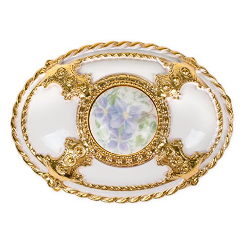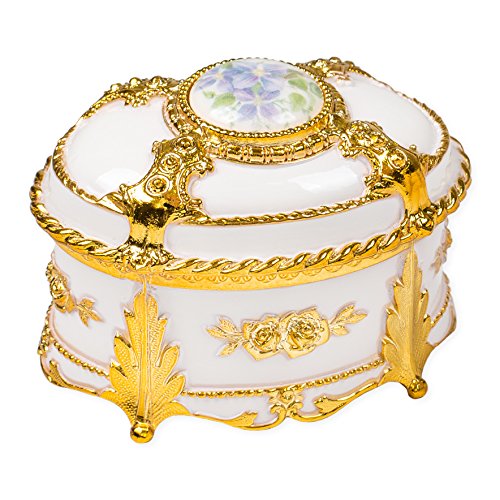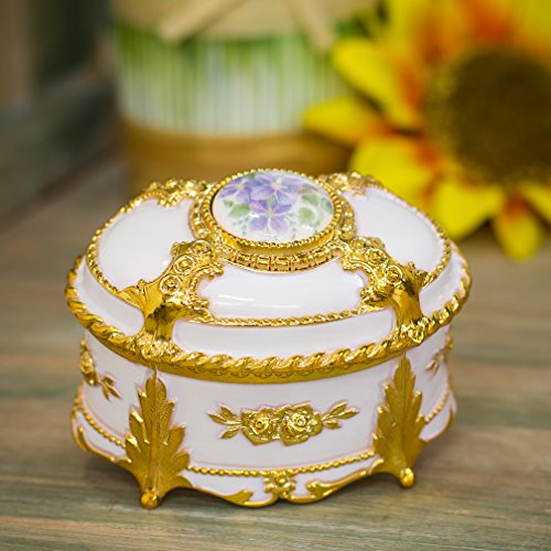 Purple Morning Glory Oval Shaped Floral Gold Tone Metal Music Box Plays Tune Unchained