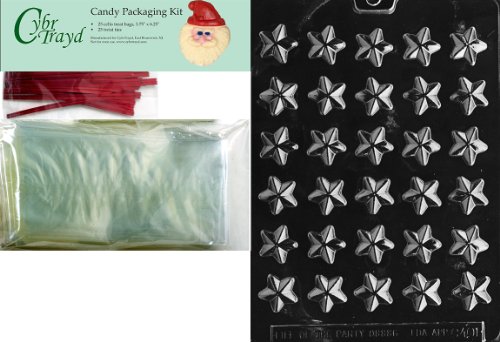Cybrtrayd MdK25R-C401 Stars Christmas Chocolate Mold with Packaging Kit, Bite Size