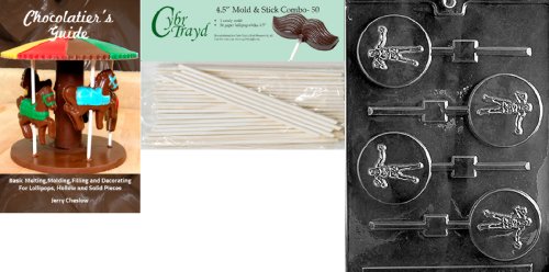 Cybrtrayd 'Boxing Lolly' Sports Chocolate Candy Mold with 50 4.5-Inch Lollipop Sticks and Chocolatier's Guide
