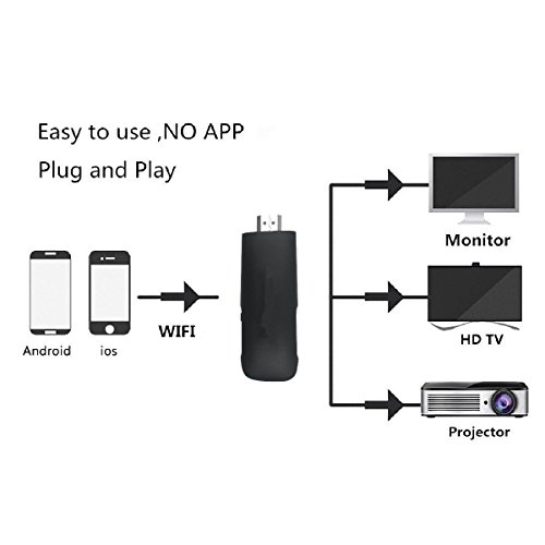 ★ streaming media player: Supports HDMI 1.4 port and 1080P HD output. Streaming and local photos, music, you can cast videos, big HD TV game from the Iphone Ipad Android device, projector, on the monitor. ★ Easy to use: APP and driver required, plug-and-play. In addition, the use of the switching button, you can easily switch between the Airplay mode or Miracast mode. Three steps to enjoy media on the big screen: Miracast, DLAN, using Airplay mode, Plug-> Connect-> Mirroring. ★ It has been widely used in Mira cast receiver. You can when you connect to the car of the HDMI port to be a great travel partner. You can mirror the Chrome of online content to HD TV. ★ excellent compatibility: The above Android 5.0 and IOS 8.0, supports Windows 10 (original system). It can be upgraded online, Android, works well while upgrade the iOS system. Enhanced signal cable, HDMI stick receives a more stable signal with zero delay, reducing the buffer or cutting. ★ guarantee satisfaction: Tumao products, there is a 6 cut month period from the date of purchase. It offers a 6-month warranty services and professional customer service and technical support. If you have our products and shop problem, please contact us directly. Why not enjoy a game or video on the big screen? Our miracast dongle is your best choice! Miracast has been widely used at the transmitter: business and education presentation (PPT, Word, Excel of the tablet the PDF and image from the smart phone, HD TV, Beamer, be transmitted to the projector) ★ perfect experience for. ★ You can become a partner of when you connect a great trip to the HDMI port of the car, traffic jam time is no longer boring. ★ when you play 3D MSG (motion sensing game) is, using a tablet as a game control, you can enjoy a large TV screen. ★ Users can also mirroring the online content in HDTV on Chrome. Key features: 1.Miracast, DLNA, supports three different transmission paths of Airplay. 2. In the switching button, you can easily switch between the Airplay or Miracast mode. 3. Multi-platform support: Android: 5.0 or higher, iPhone / iPad: IOS: 8.0 or higher, Mac OS X 10.9, Windows: 10 (original system). 4. Support movie, video, audio, games, images, music, web cast, web browsing streaming. 5. Extreme 2.4G technology and enhanced signal cable, does not guarantee the delay and buffer. 6. Plug-and-Play: You do not need to add the APP and drivers on your smartphone or tablet. Note: 1. Please make sure that the smart phone or tablet Miracast / DLNA is compatible before you buy a stick. Specifications: -Networking: 802.11n 150 Mbps - Extreme2.4Ghz, does not guarantee the delay or buffer. -CPU: AM8252B 128MB DDR - Video Output: 1080p (HDMI) system support: IOS, Android, window 10 (original system) - Power: DC 5V / 1A OTA: online upgrade support - Size: 90 * 31 * 13 mm . Package Contents: 1 * Wireless HDMI Mira cast dongle; 1 * enhanced signal cable; 1 * Micro USB cable; 1 * English user manual; 1 * 6-month warranty.