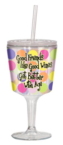 Spoontiques Good Friends/Good Wine Goblet, Multi Colored