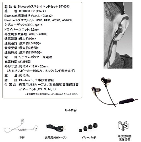 원본상품명: 【??正規品】 Bluetoothステレオヘッドセット ?量コンパクトなワイヤレスイヤホン apt-x??なので高音質を?現 BTH093-BK